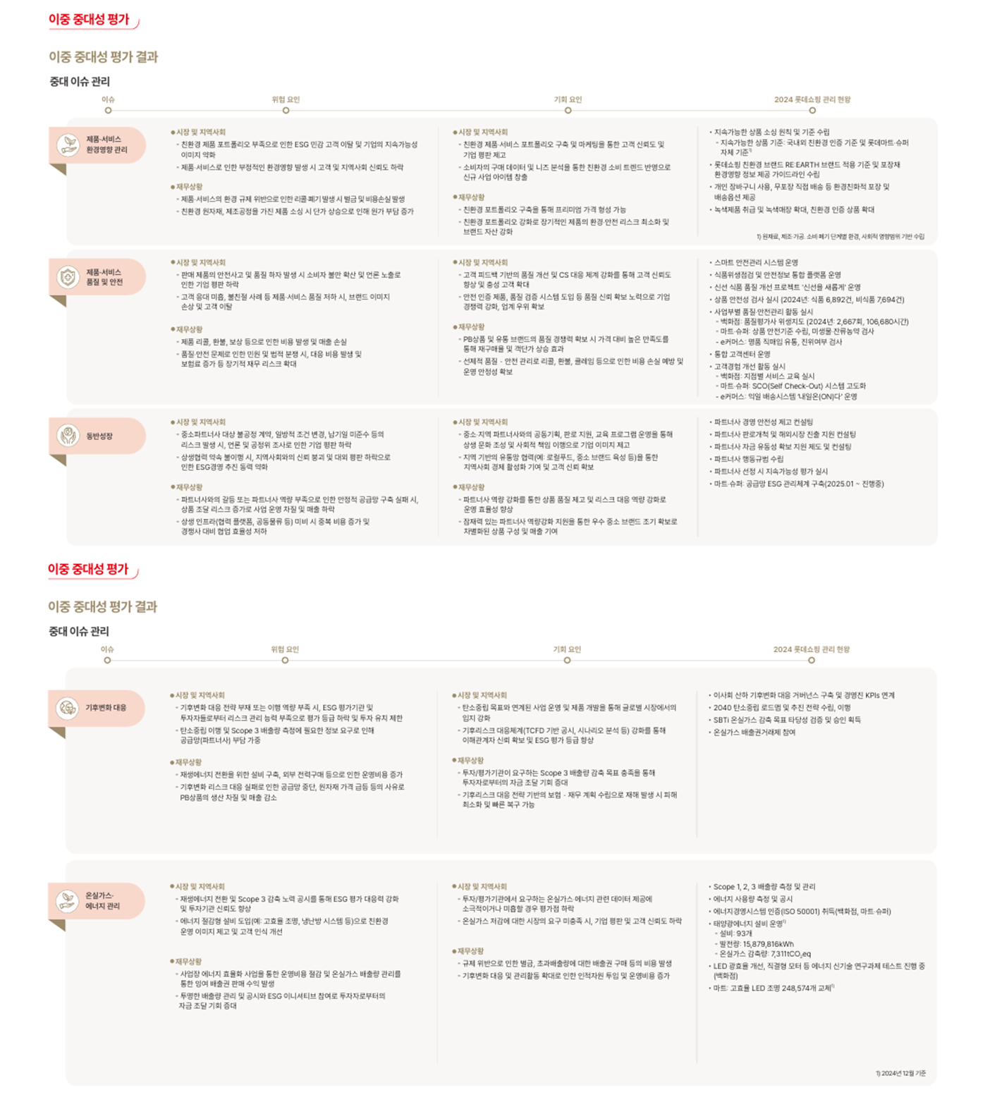 2024년 중대성 분석 결과, 롯데쇼핑이 우선적으로 대응해야 할 핵심 분야는 다음과 같습니다.