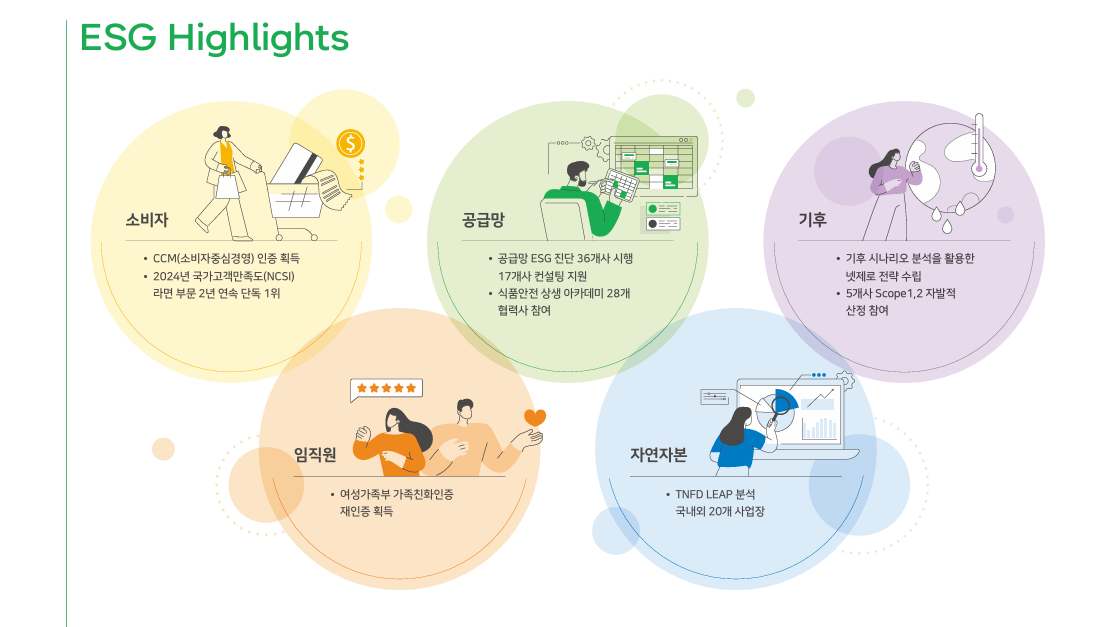 오뚜기의 ESG 전략은 아래 3대 축으로 구성됩니다.