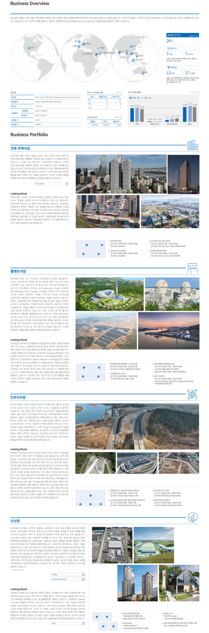 ▶ 주요 사업: 주택(자이), 인프라/건축, 플랜트, 모듈러, 환경(EPC), 신재생에너지