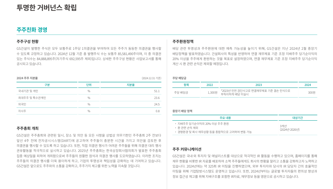 2024년 GS건설은 품질·안전 중심 경영 강화, 선택과 집중을 통한 사업구조 효율화,