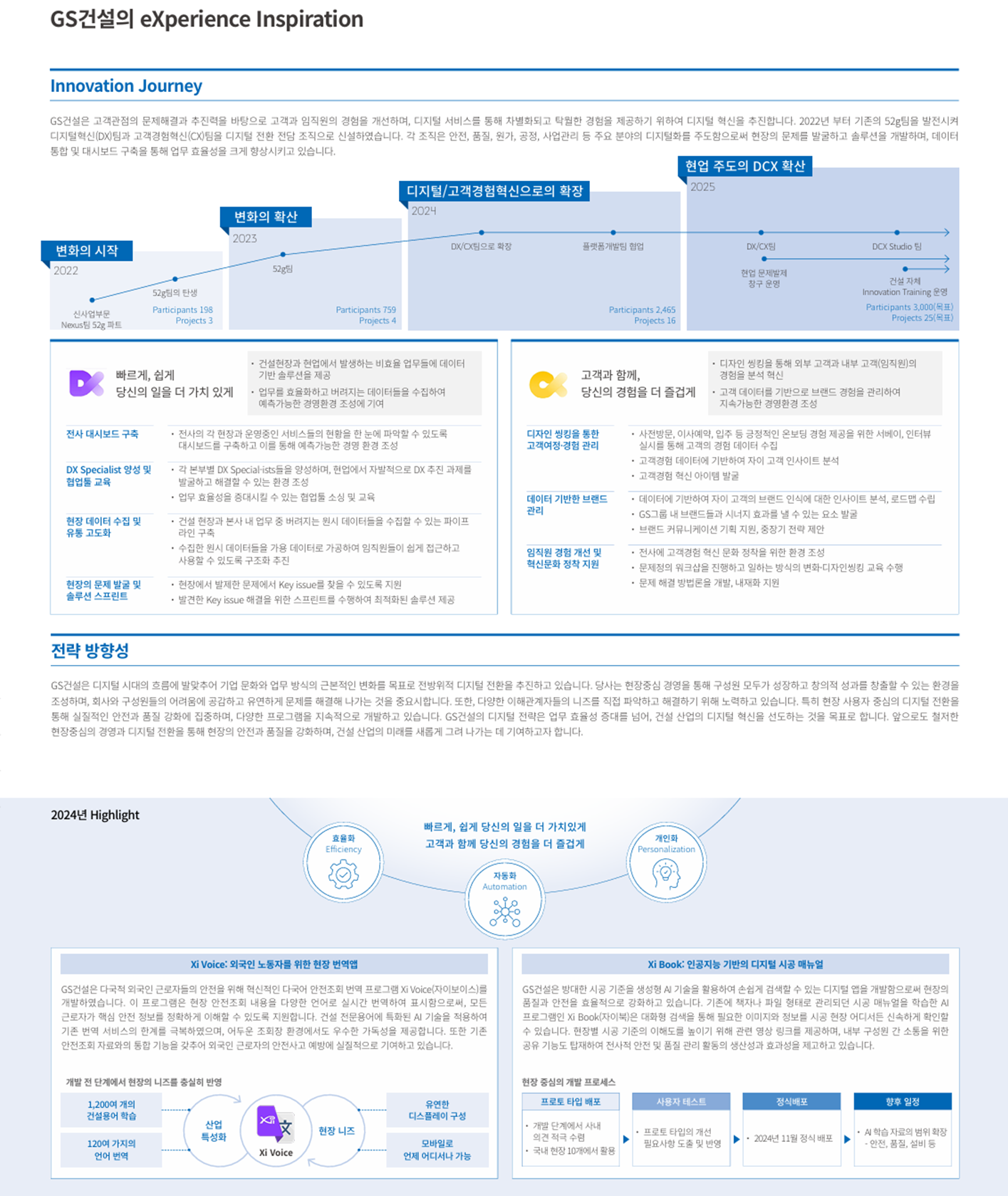 GS건설은 다양한 해외 대형 프로젝트에서 쌓은 수주 경쟁력을 바탕으로 대한민국을 대표하는 건설 기업으로 자리매김하고 있습니다. 고객의 가치를 최우선으로 생각하고 끊임없는 개발과 혁신