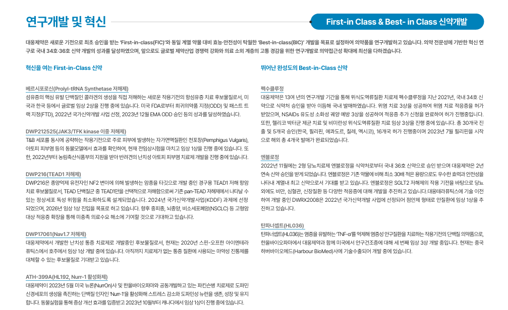 ✔ 2년 연속 신약 승인 성과
