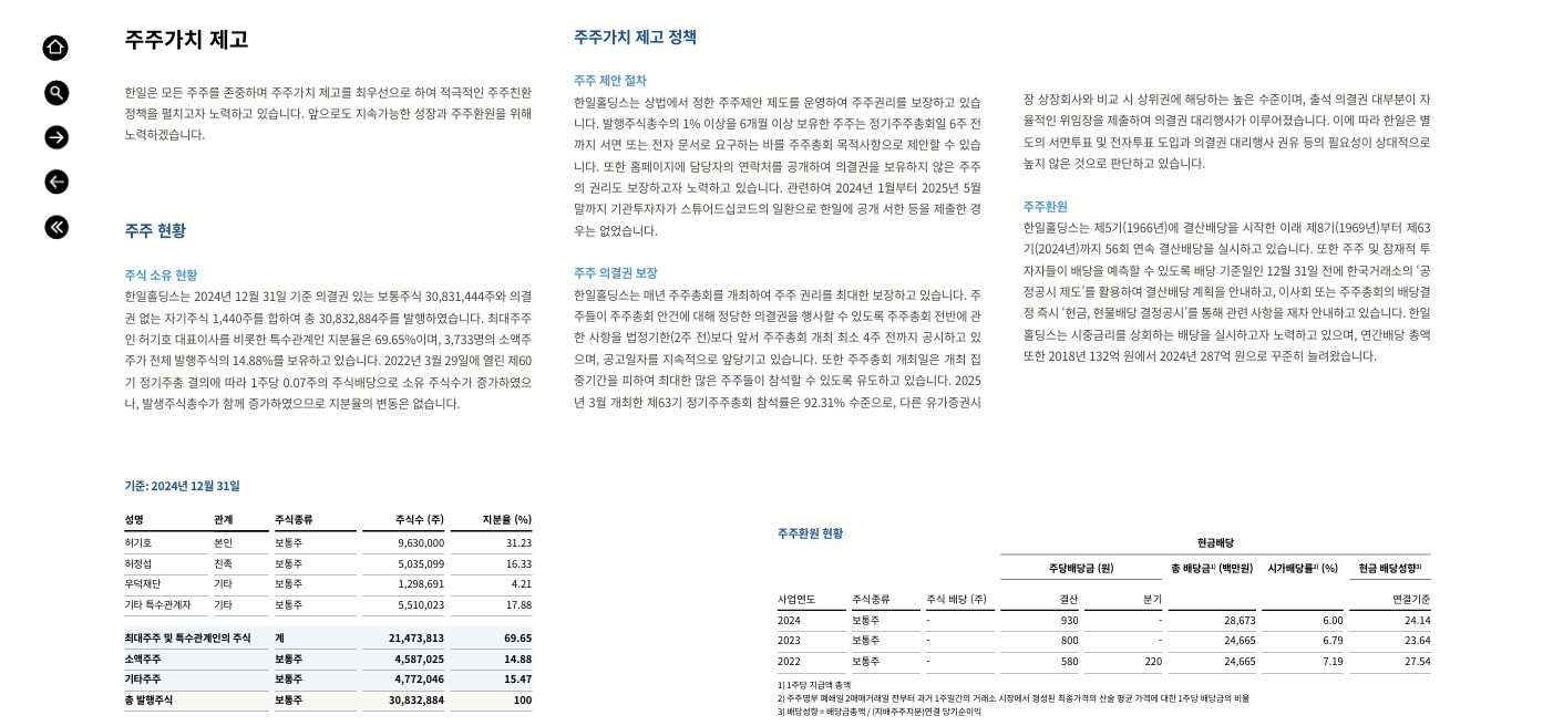 한일의 지배구조는 다음과 같이 구축되어 있습니다.