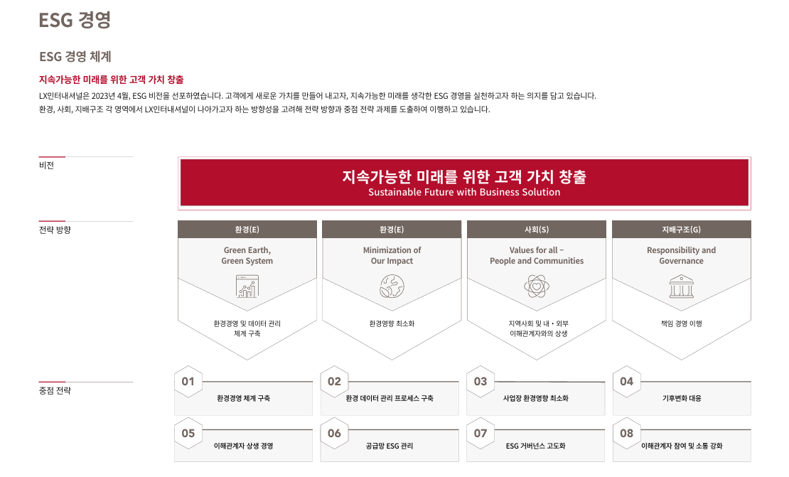 LX인터내셔널의 ESG 전략은 단순한 준법이나 비용 중심의 접근이 아니라,