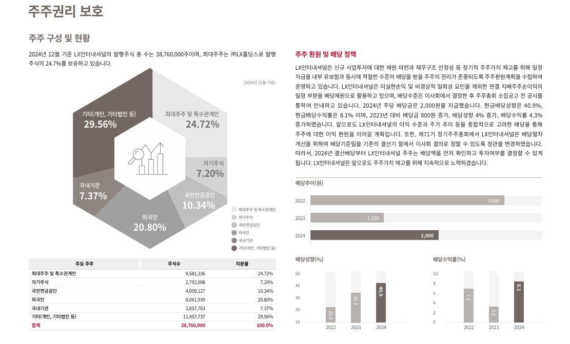 종합하면, LX인터내셔널은 전통적 트레이딩 기업에서 자원·에너지 기반의 ESG 성장 기업으로 전환 중이며,
