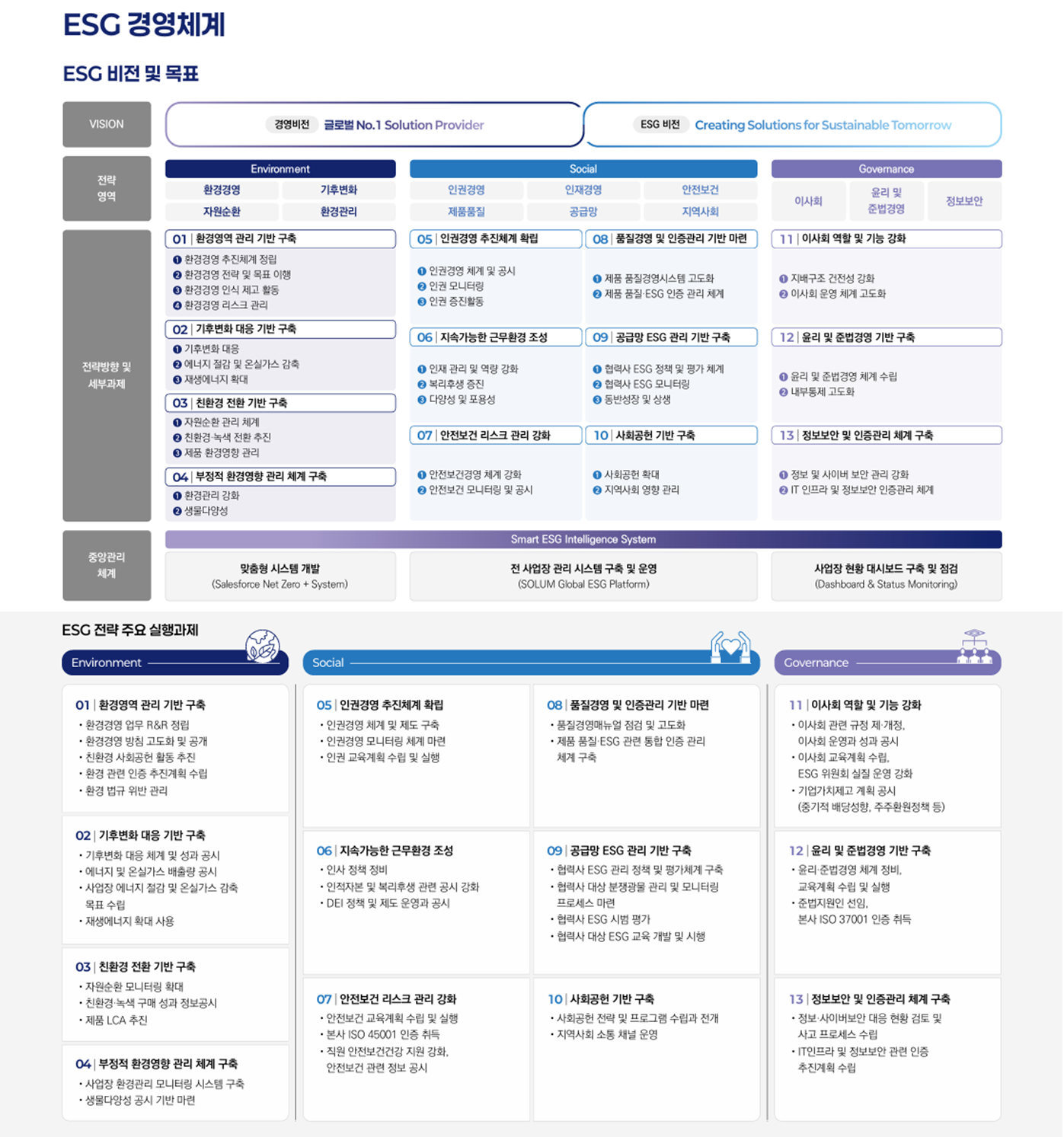 ESG 경영을 단순한 공시 수준이 아닌 사업 전략의 중요한 축으로 설정하고 있습니다.