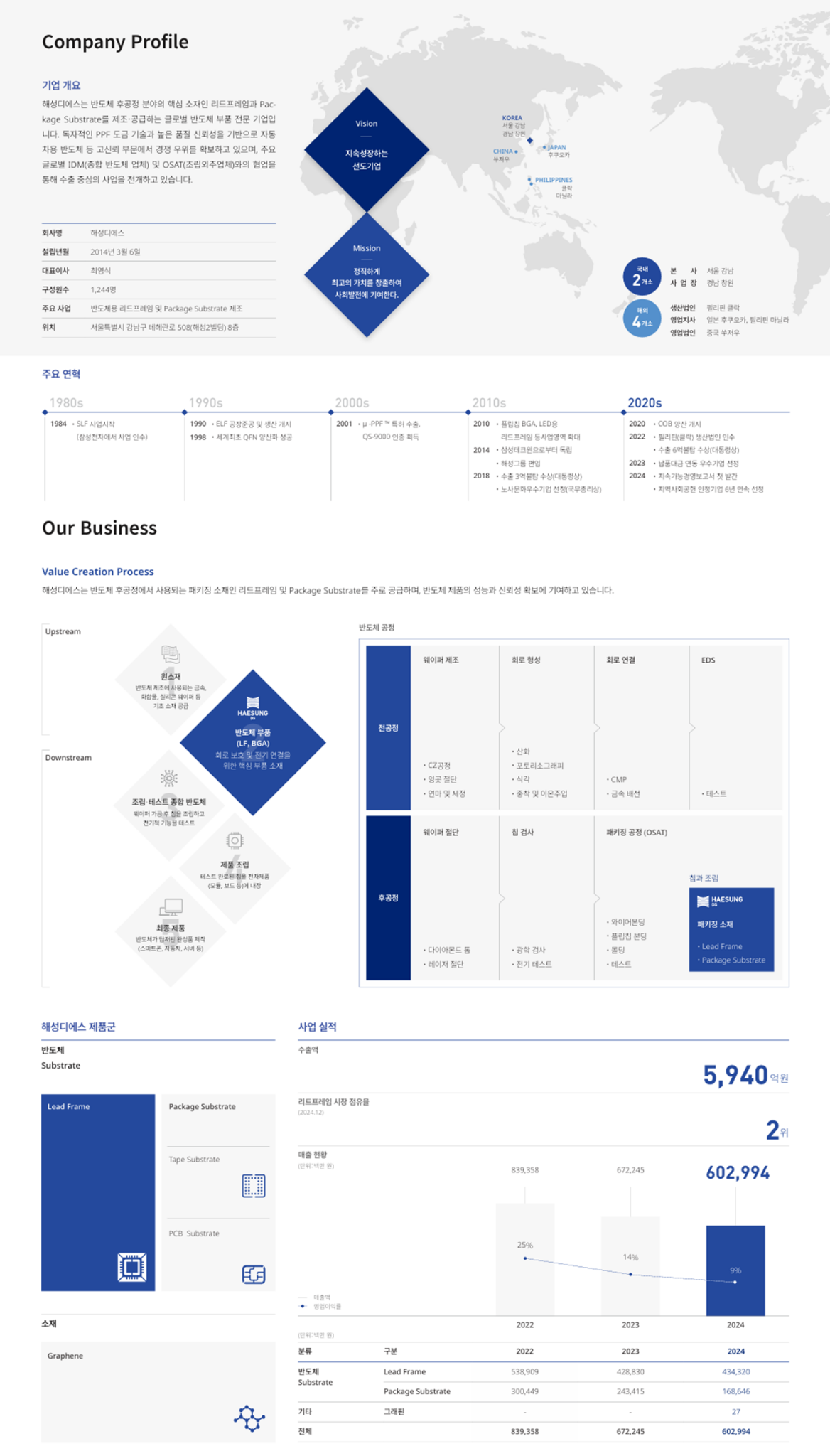필리핀·중국 등 글로벌 생산 네트워크 확장 등 기술·품질 중심의 성장을 지속해왔습니다.
