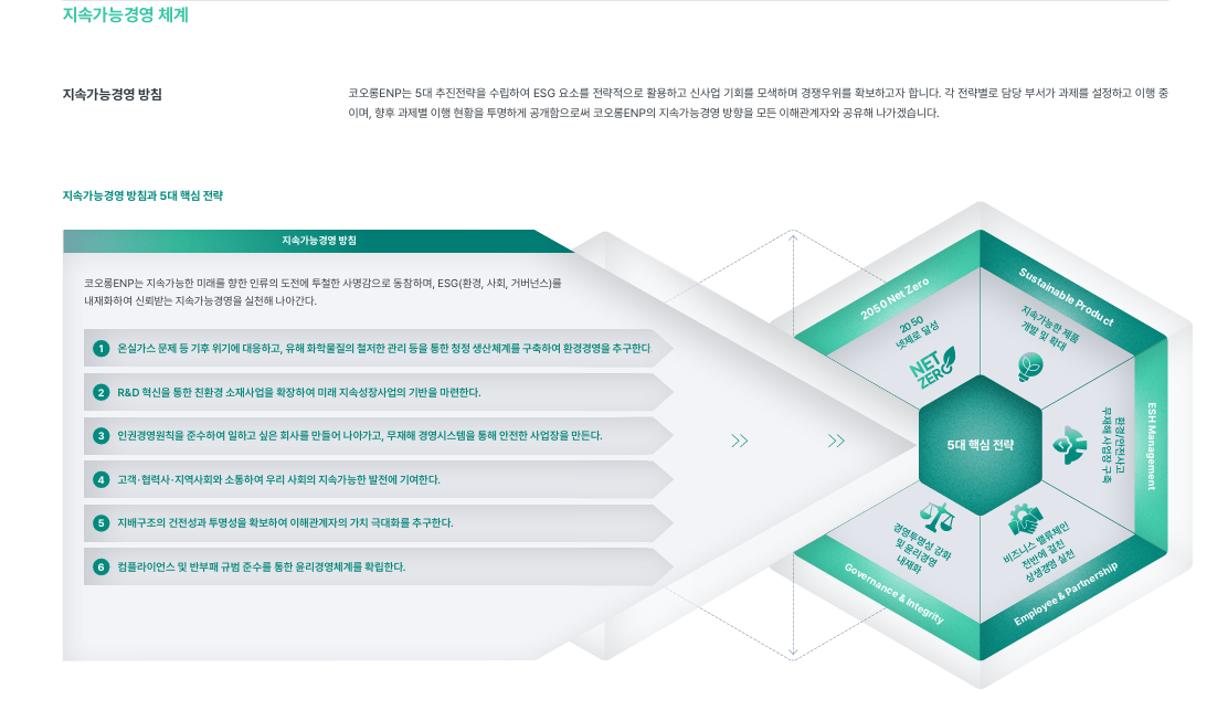 ESG 시대의 핵심 요소인 탄소·순환경제·공급망 투명성을 전략적으로 통합하고 있습니다.