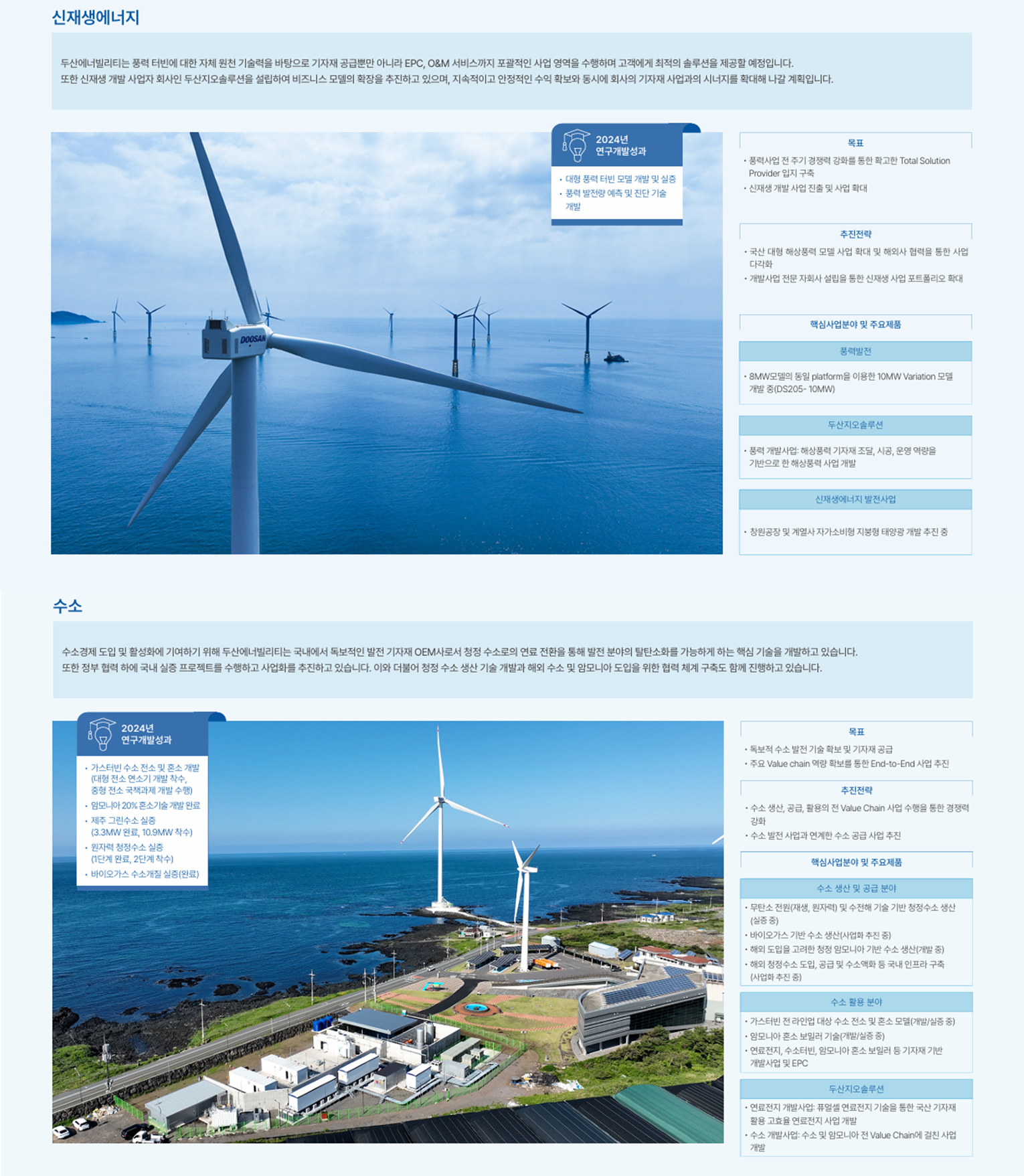 두산지오솔루션을 중심으로 EPC·운영까지 아우르는 Total Solution Provider 전략을 추진합니다.
