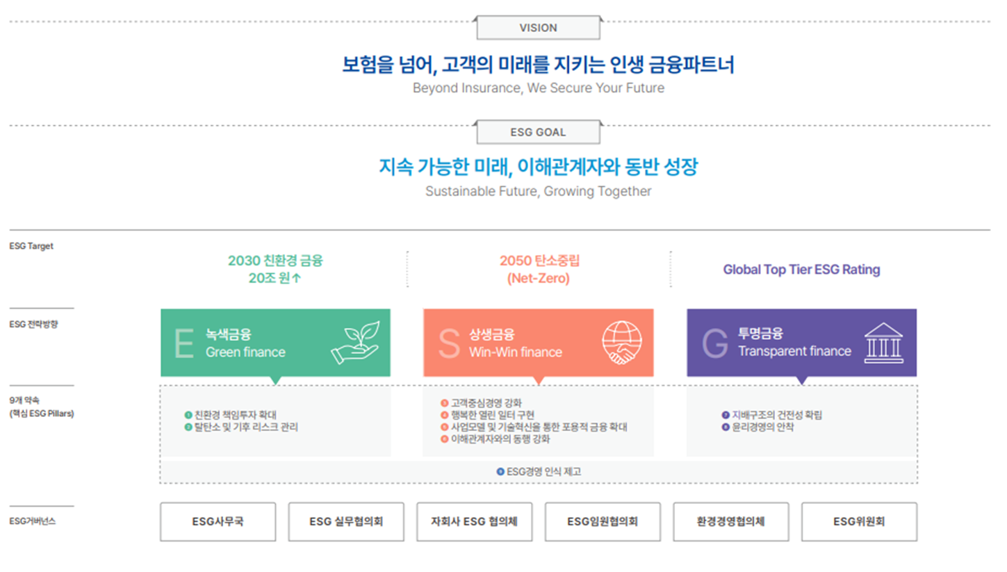 삼성생명은 이사회 산하 **ESG위원회(사외이사 2명 포함)**를 통해 ESG 의사결정을 통합 관리하며,
