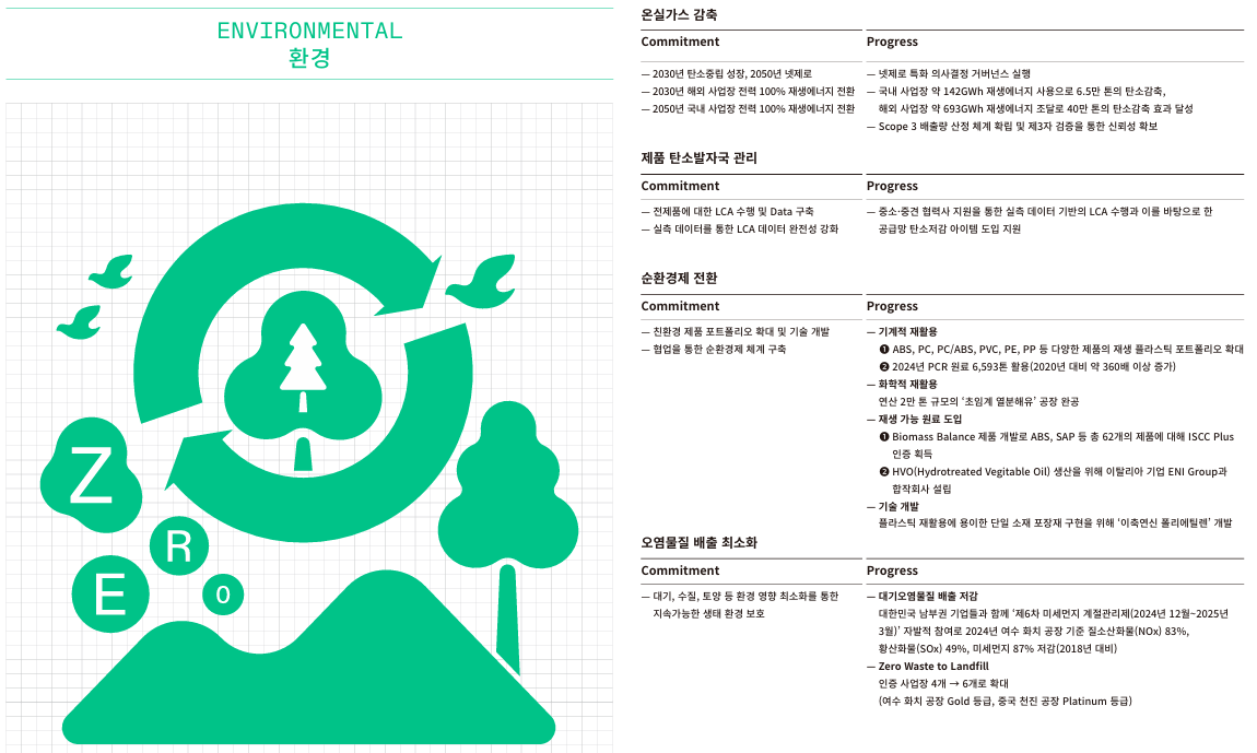 LG화학은 2024년 지속가능경영보고서에서 ‘RE:ACT TO ZERO’라는 슬로건을 중심으로,