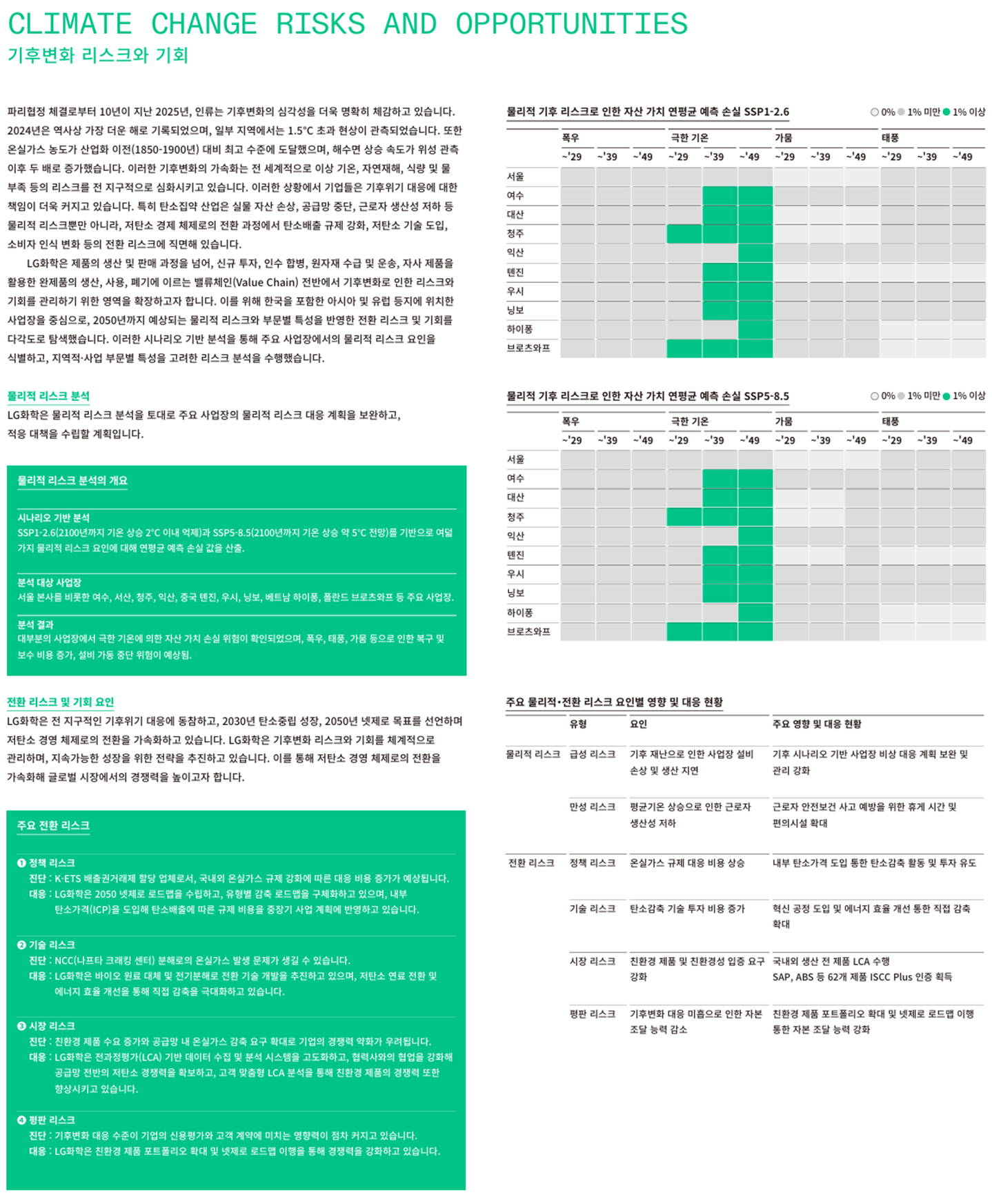 전 세계 사업장에서 기후 리스크를 체계적으로 관리하고 있습니다.