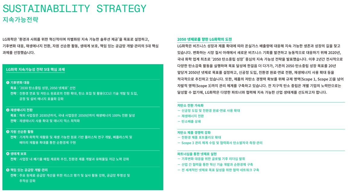 지속가능경영보고서 및 ESG 성과 데이터 | 지속가능경영전략 | Sustainability | LG화학