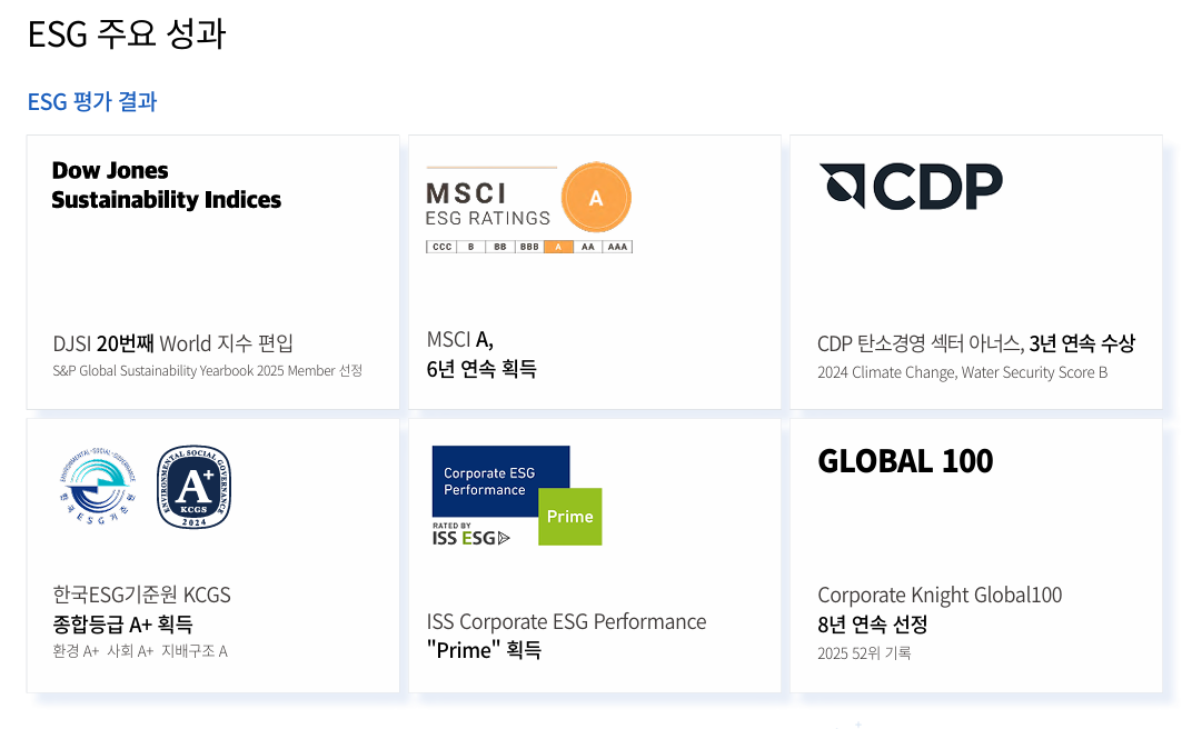 삼성SDI는 2024~2025년 글로벌 ESG 평가에서 다음과 같은 성과를 거두었습니다.