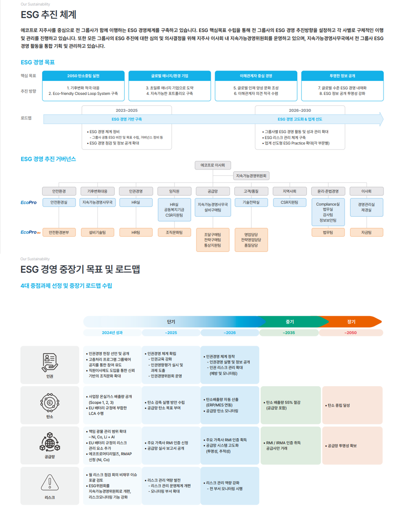 에코프로비엠은 여기와 연동되는 형태로 기후·인권·공급망·리스크 로드맵을 운영합니다.