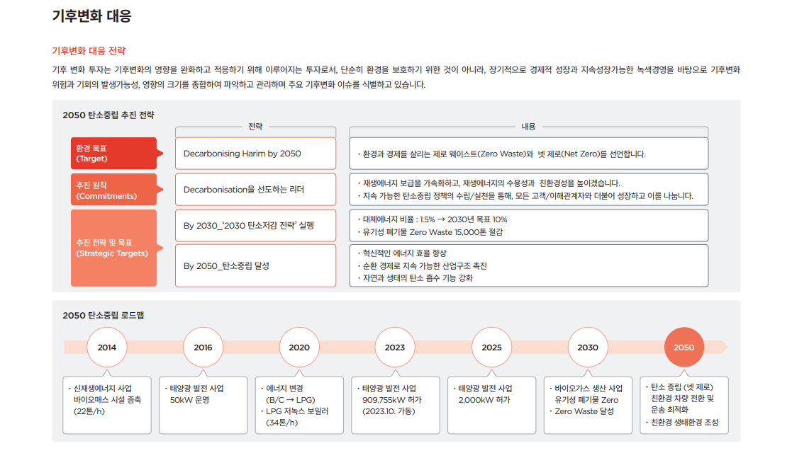 3. 환경(E): 2050 탄소중립과 Zero Waste를 동시에 환경 파트의 핵심은 “Decarbonising Harim by 2050”