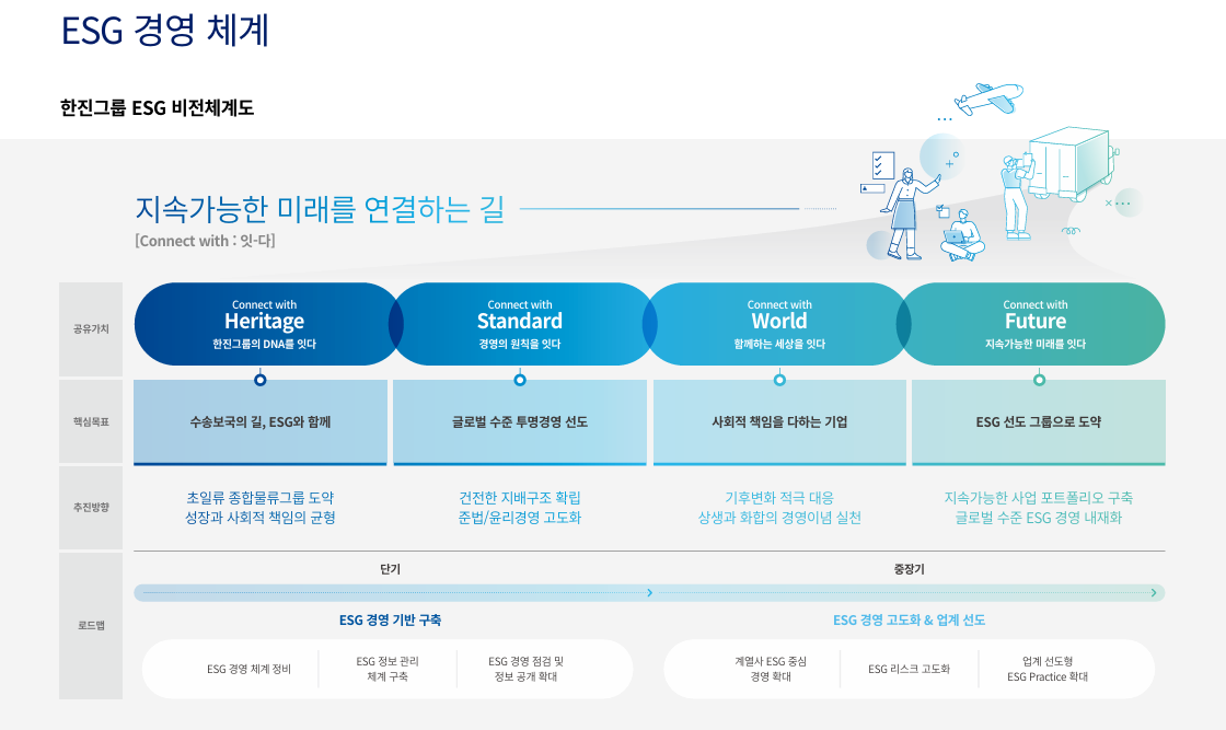 한진그룹의 ESG 비전은 네 개의 키워드로 정리됩니다.
