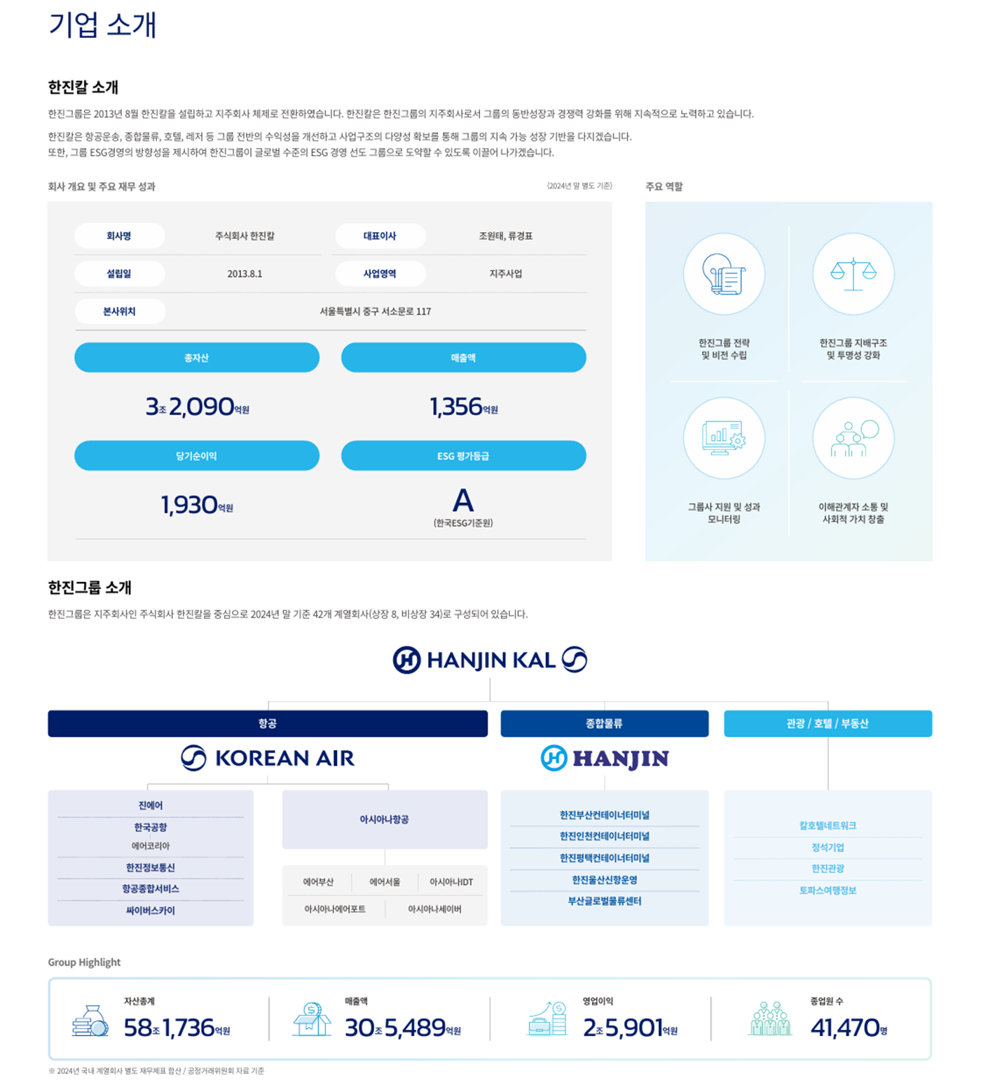 - 대한항공·㈜한진 등 주요 계열사 성과 모니터링