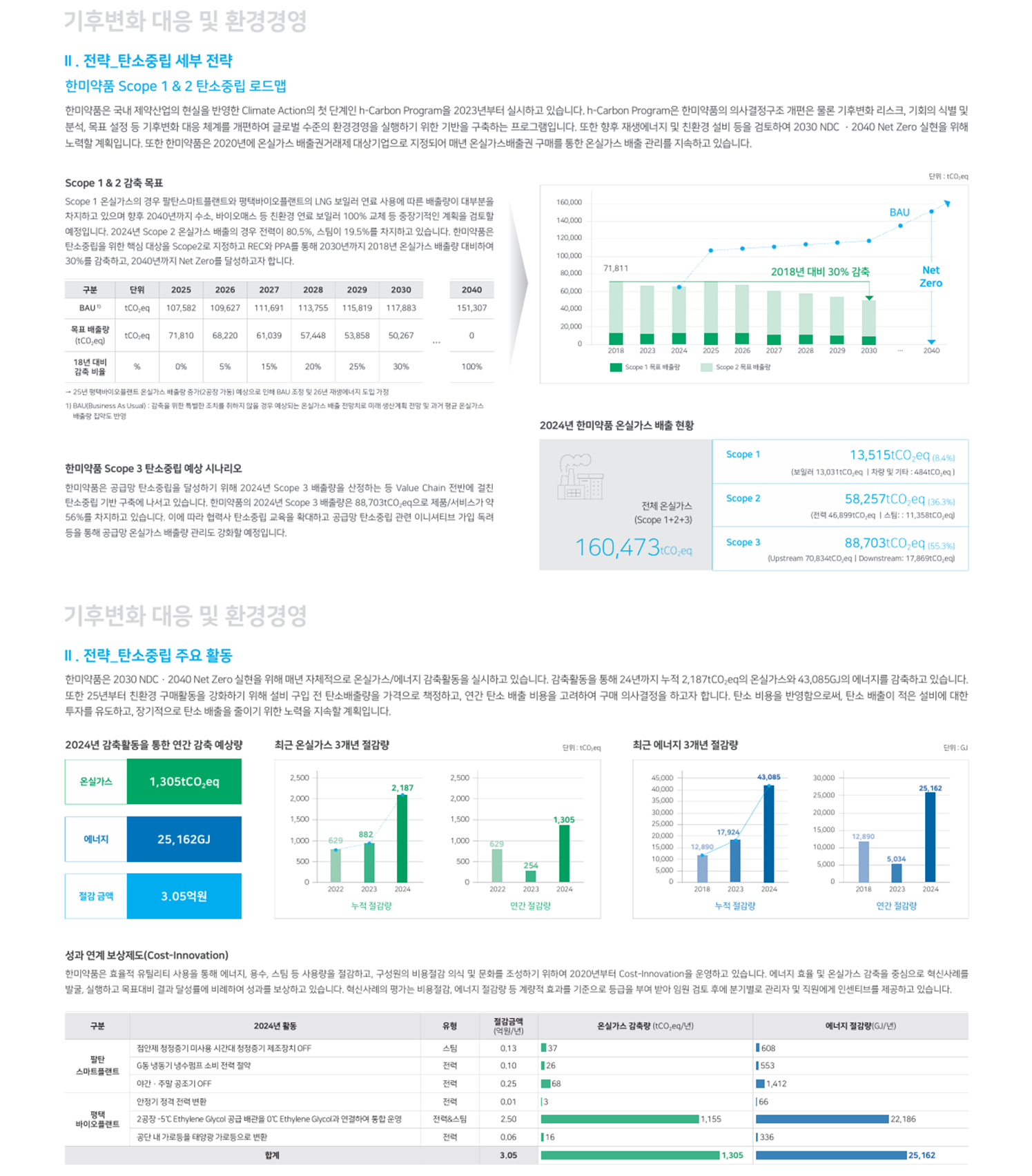 특히 한미약품은 전 사업장의 Scope 1·2 배출량을 공개하고, 장기 감축 로드맵을 명시하며 투명성을 강화했습니다.