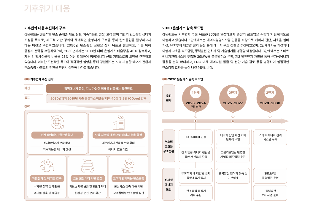 보고서에 따르면 강원랜드는 2050 탄소중립을 공식 선언하고