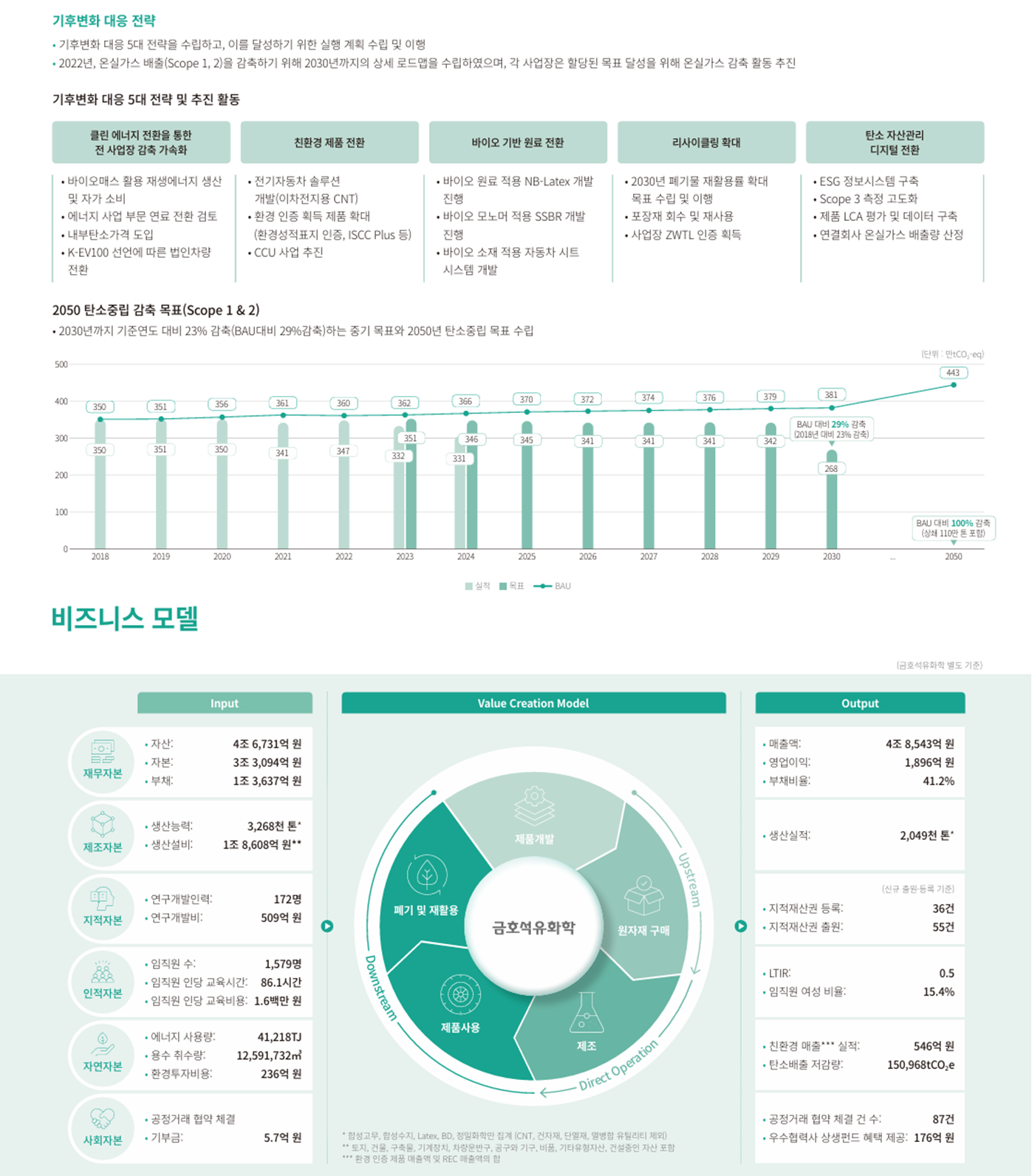 금호석유화학은 2050 탄소중립을 선언하고 BAU 대비