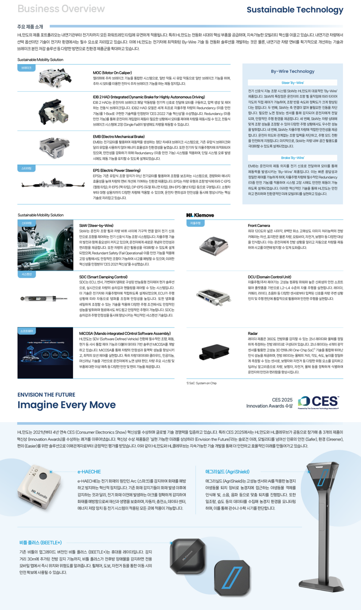 또한 CES 2025에서는 HL만도와 HL클레무브가 총 3개 제품 혁신상을 수상하며 기술 리더십을 확고히 했습니다.