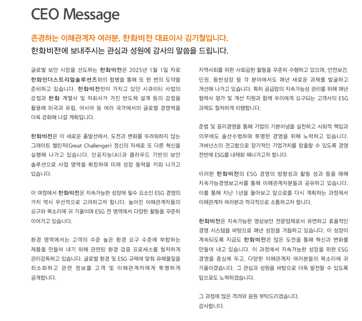 1. CEO 메시지: “지속가능한 글로벌 보안기업으로 도약하겠습니다”